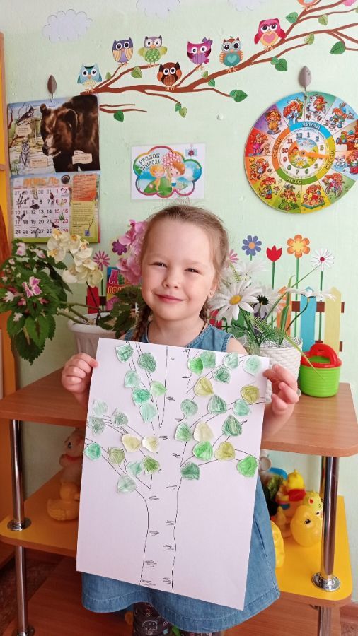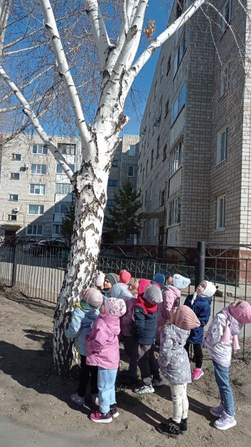 На прогулке дети средней группы № 2 (воспитатель Малярова Л.А.) прошли по «экологической тропе» на территории детского сада, увидели, как меняются деревья и кустарники весной, что происходит с березами, обсудили, чем можно помочь «раненой березке». Выполнили творческое задание: украсили березку весенними листочками. Поиграли в настольную игру «Азбука природолюбия».